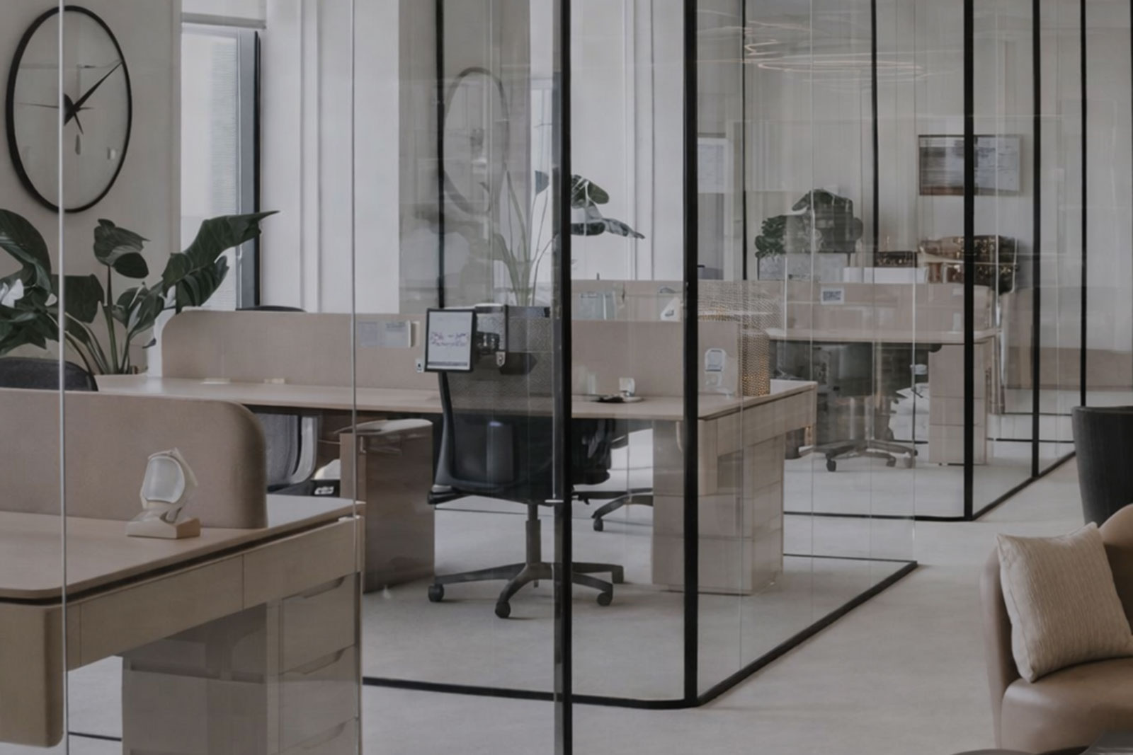 Recepcija, hodnici i dvorane za sastanke — uredno i spremno za klijente i sastanke.
